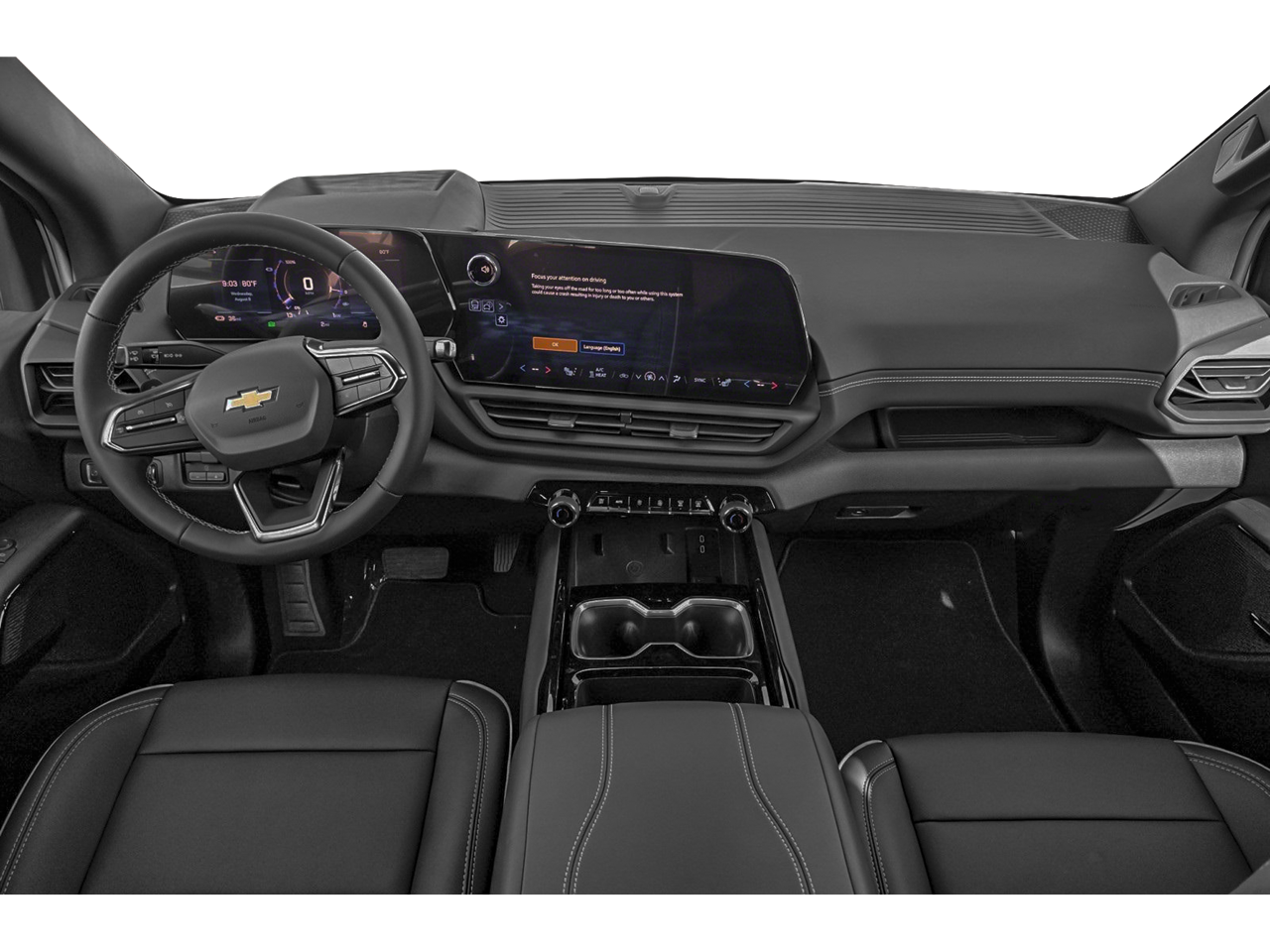 11.63 Axle Ratio, 1st and 2nd Row All-Weather Floor Liners, 4-Wheel Disc Brakes, 4-Wheel Independent Suspension, 6 Speakers, 6-Speaker Audio System Feature, 8-Way Power Driver Seat Adjuster, ABS brakes, Air Conditioning, Alloy wheels, AM/FM radio: SiriusXM with 360L, Auto High-beam Headlights, Auto-dimming Rear-View mirror, Automatic temperature control, Black Name Plates, Brake assist, Delay-off headlights, Driver 2-Way Power Lumbar Seat Adjuster, Driver door bin, Driver vanity mirror, Dual front impact airbags, Dual front side impact airbags, Electronic Stability Control, Emergency communication system: OnStar, Evotex Seat Trim, Four wheel independent suspension, Front anti-roll bar, Front Bucket Seats, Front Center Armrest w/Storage, Front dual zone A/C, Front License Plate Bracket Mounting Package, Front Passenger 4-Way Manual Seat Adjuster, Front reading lights, Fully automatic headlights, Garage door transmitter, Heated door mirrors, Heated Front Driver and Passenger Seats, Heated front seats, Heated steering wheel, Low tire pressure warning, NACS DC Adapter, Navigation System, Occupant sensing airbag, Outside temperature display, Overhead airbag, Overhead console, Panic alarm, Passenger door bin, Passenger vanity mirror, Power door mirrors, Power driver seat, Power steering, Power windows, Preferred Equipment Group 2LT, Radio data system, Radio: 17.7 Diagonal Advanced Color LCD Display, Rain sensing wipers, Rear reading lights, Rear step bumper, Rear window defroster, Remote keyless entry, Security system, SiriusXM with 360L Trial Subscription, Speed control, Speed-sensing steering, Split folding rear seat, Sport steering wheel, Standard Range Battery Pack, Steering wheel mounted audio controls, Telescoping steering wheel, Tilt steering wheel, Traction control, Trip computer, Variably intermittent wipers, Wheels: 18 x 8.5 High Gloss Black Painted Aluminum.
