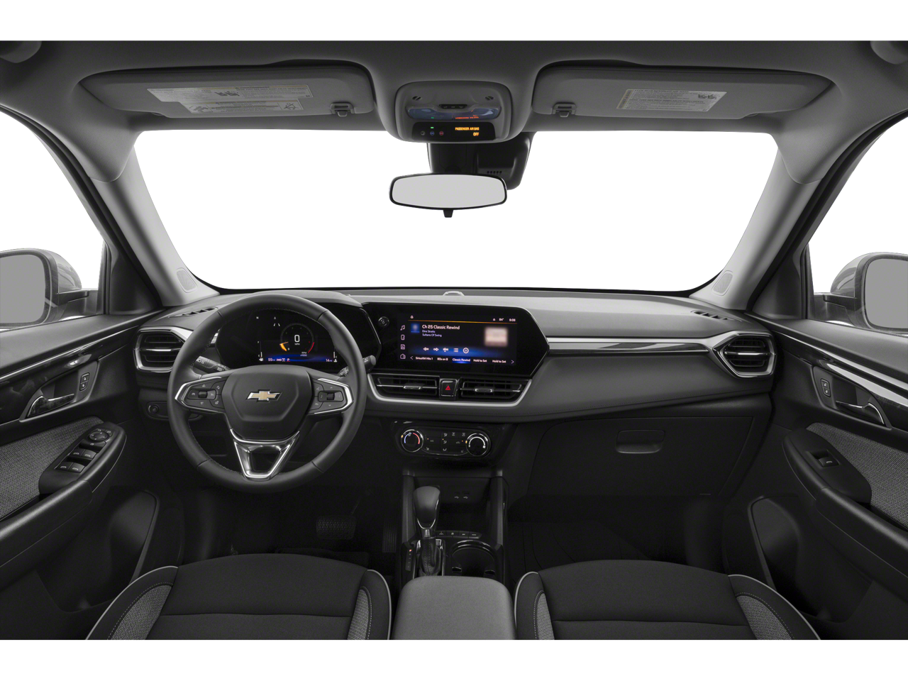 1 Type-A and 1 Type-C USB Ports, 4-Way Manual Front Passenger Seat Adjuster, 4-Wheel Disc Brakes, 5.45 Final Drive Axle Ratio, 6 Speakers, 6-Way Manual Driver Seat Adjuster, ABS brakes, Air Conditioning, Alloy wheels, AM/FM radio: SiriusXM, Auto High-beam Headlights, Brake assist, Bumpers: body-color, Cargo Liner, Cloth Seat Trim, Compass, Delay-off headlights, Driver Confidence Package, Driver door bin, Driver vanity mirror, Dual front impact airbags, Dual front side impact airbags, Electronic Stability Control, Emergency communication system: OnStar and Chevrolet connected services capable, Enhanced Performance 6-Speaker Audio System, Exterior Parking Camera Rear, Flat-Folding Front Passenger Seatback, Front anti-roll bar, Front Bucket Seats, Front Center Armrest, Front reading lights, Front wheel independent suspension, Fully automatic headlights, Heated door mirrors, Illuminated entry, Knee airbag, Lane Change Alert with Side Blind Zone Alert, Low tire pressure warning, Occupant sensing airbag, Overhead airbag, Overhead console, Panic alarm, Passenger door bin, Passenger vanity mirror, Power door mirrors, Power steering, Power windows, Radio data system, Radio: AM/FM Stereo Audio System, Rear Cross Traffic Alert, Rear Park Assist, Rear side impact airbag, Rear window defroster, Rear window wiper, Remote keyless entry, Ride and Handling Suspension, Security system, SiriusXM Trial Subscription, Speed control, Split folding rear seat, Spoiler, Steering wheel mounted audio controls, Tachometer, Telescoping steering wheel, Tilt steering wheel, Traction control, Trip computer, Variably intermittent wipers, Wheels: 17 High Gloss Black Machined Aluminum, Wireless Apple CarPlay/Android Auto.