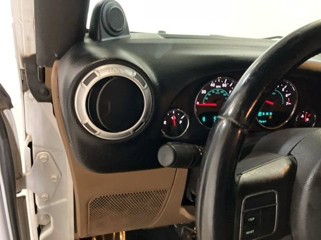 18 x 7.5 Polished Satin Carbon Wheels, 3.21 Rear Axle Ratio, 4-Wheel Disc Brakes, 7 Speakers, ABS brakes, Air Conditioning, Alloy wheels, AM/FM radio: SIRIUS, Audio Jack Input for Mobile Devices, Auto-dimming Rear-View mirror, Brake assist, CD player, Cloth Bucket Seats, Compass, Driver door bin, Driver vanity mirror, Dual front impact airbags, Electronic Stability Control, Front anti-roll bar, Front Bucket Seats, Front Center Armrest w/Storage, Front fog lights, Front reading lights, Fully automatic headlights, Heated door mirrors, Heavy Duty Suspension w/Gas Shocks, Illuminated entry, Integrated roll-over protection, Leather steering wheel, Low tire pressure warning, Occupant sensing airbag, Outside temperature display, Panic alarm, Passenger door bin, Passenger vanity mirror, Power door mirrors, Power steering, Power windows, Quick Order Package 24G, Radio data system, Radio: Uconnect 130 AM/FM/CD/MP3, Rear anti-roll bar, Remote keyless entry, Security system, Speed control, Split folding rear seat, Steering wheel mounted audio controls, Sunrider Soft Top, Supplemental Front Seat Side Airbags, Tachometer, Tilt steering wheel, Traction control, Trip computer, Variably intermittent wipers.