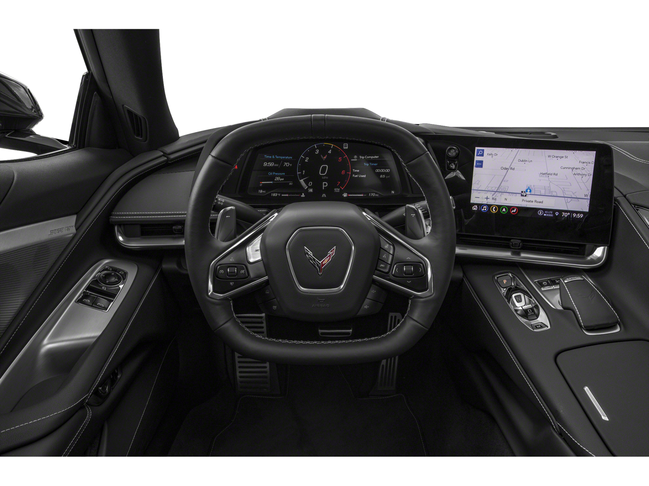 10 Speakers, 4-Wheel Disc Brakes, 8-Way Power Driver Seat Adjuster, 8-Way Power Passenger Seat Adjuster, ABS brakes, Air Conditioning, Alloy wheels, AM/FM radio: SiriusXM, Apple CarPlay/Android Auto, Automatic temperature control, Body-Color Removeable Roof Panel, Bose Premium 10-Speaker Audio System Feature, Brake assist, Bumpers: body-color, Compass, Delay-off headlights, Driver door bin, Driver vanity mirror, Dual front impact airbags, Dual front side impact airbags, Electronic Stability Control, Emergency communication system: OnStar and Chevrolet connected services capable, Four wheel independent suspension, Front anti-roll bar, Front Bucket Seats, Front Center Armrest, Front dual zone A/C, Front License Plate Bracket, Front reading lights, Fully automatic headlights, GT1 Bucket Seats, HD Radio, Heated door mirrors, Illuminated entry, Leather Shift Knob, Leather steering wheel, Low tire pressure warning, Mulan Lthr Seating Surfaces w/Perforated Inserts, Occupant sensing airbag, Outside temperature display, Overhead console, Panic alarm, Passenger door bin, Passenger vanity mirror, Power door mirrors, Power driver seat, Power passenger seat, Power steering, Power windows, Preferred Equipment Group 1LT, Premium audio system: Chevrolet Infotainment 3 Plus, Radio data system, Radio: Chevrolet Infotainment 3 Plus System, Rear anti-roll bar, Rear Park Assist, Rear Parking Sensors, Rear window defroster, Remote keyless entry, SiriusXM Radio, Speed control, Speed-sensing steering, Sport steering wheel, Steering wheel mounted audio controls, Tachometer, Telescoping steering wheel, Tilt steering wheel, Traction control, Trip computer, Turn signal indicator mirrors, Variably intermittent wipers, Voltmeter, Wheels: 19 x 8.5 Fr/20 x 11 Rr Bright Silver, Wheels: 19 x 8.5 Fr/20 x 11 Rr Carbon Flash.